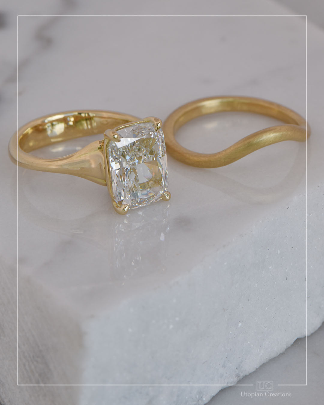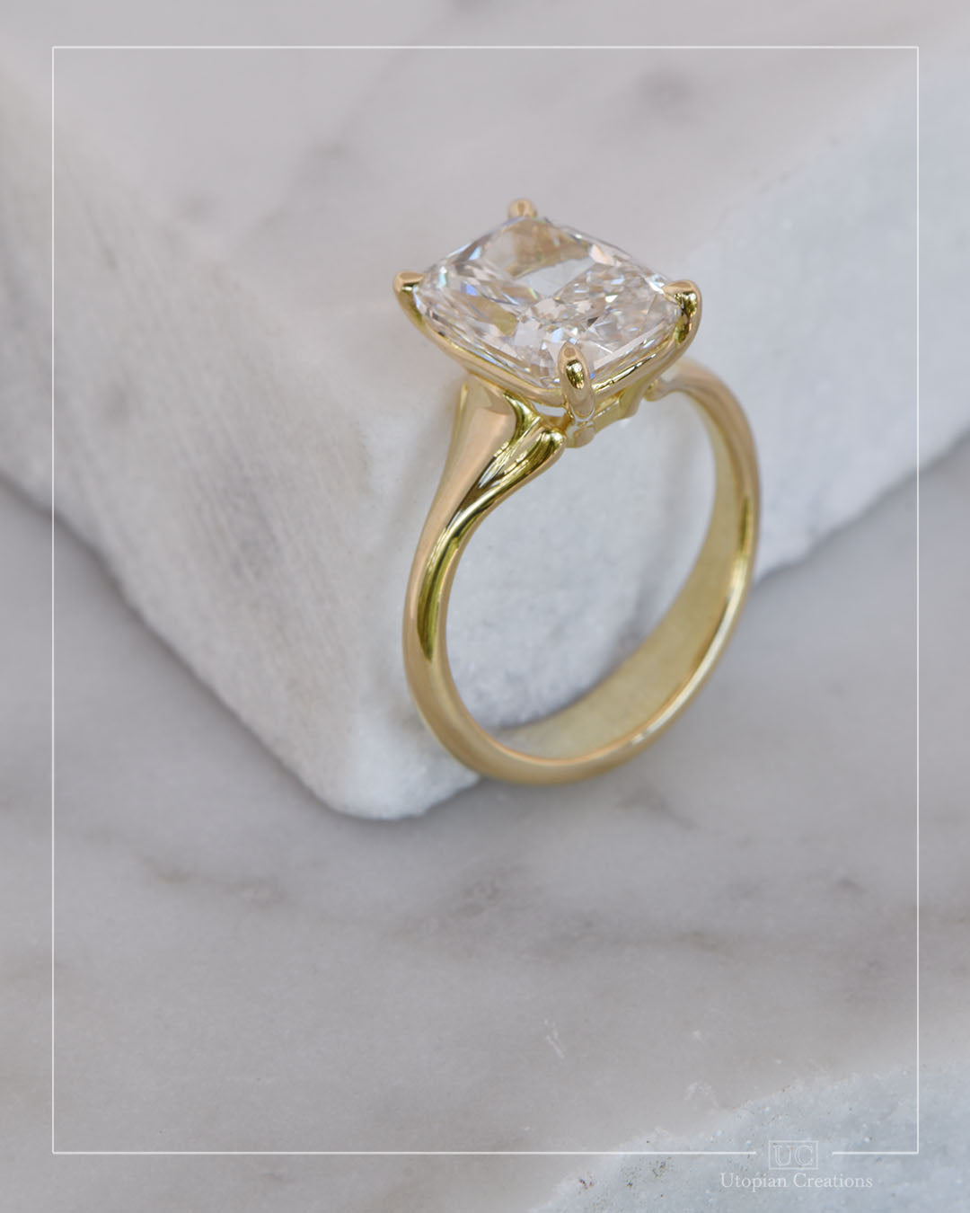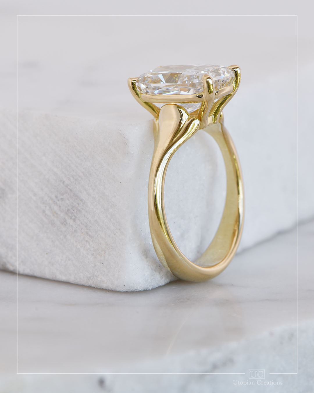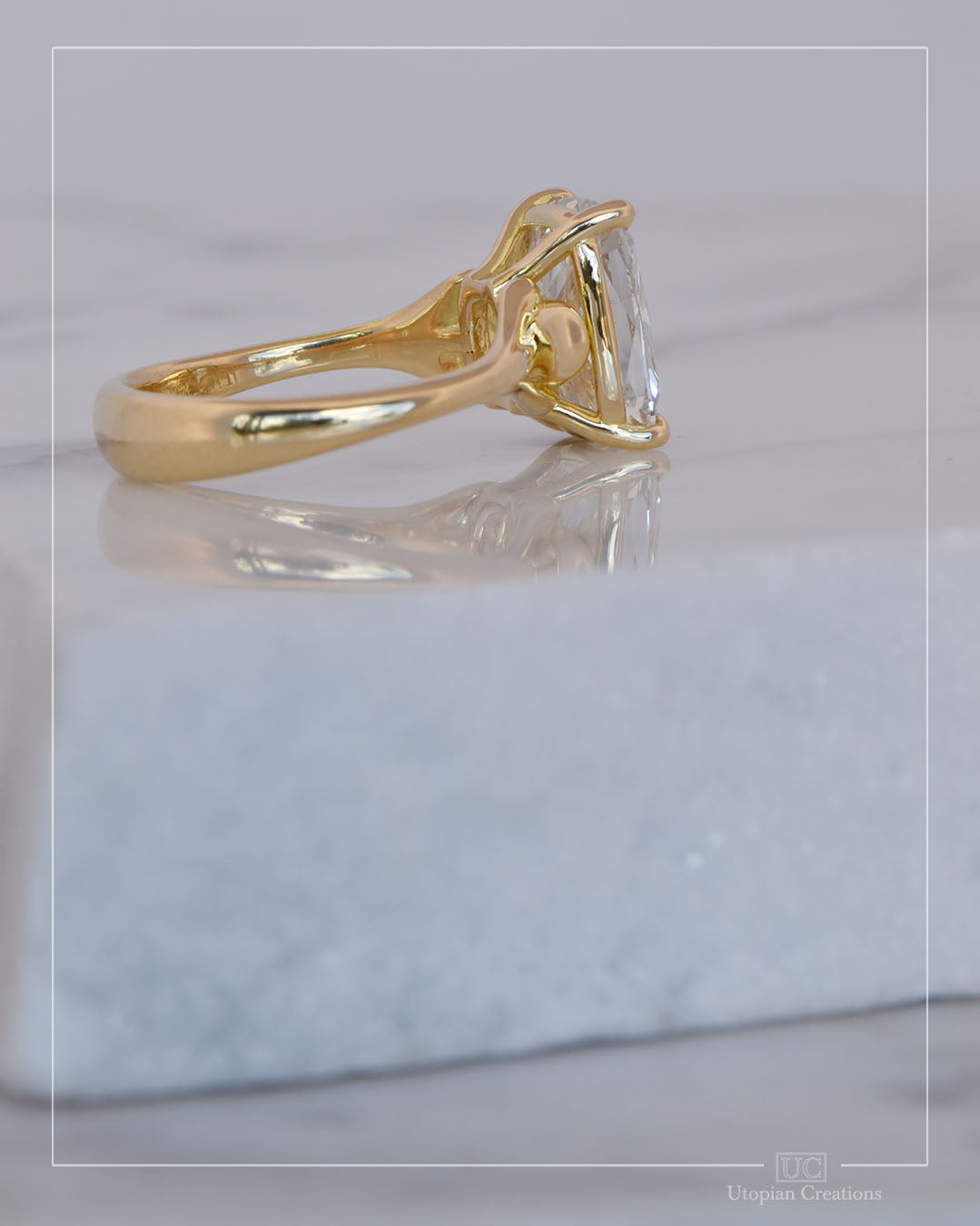 While many high-carat settings can feel imposing or "blocky," the Valerie defies expectations. Designed with a light, airy architecture, this 18k yellow gold masterpiece eschews heavy metalwork in favour of an elegant, open profile. The 4-claw setting is engineered to prioritise both the security of the stone and a seamless, comfortable feel for daily wear. The Valerie isn't just a ring; it’s a masterclass in modern jewellery design. It marries the timeless warmth of yellow gold with an innovative, "floating" aesthetic, promising to be a radiant companion for your most cherished moments.