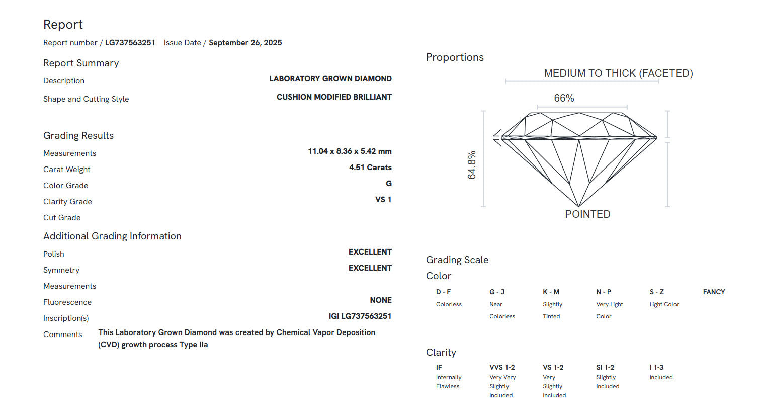 Valerie - 4.51ct Cushion Cut Certified Lab Diamond solitaire